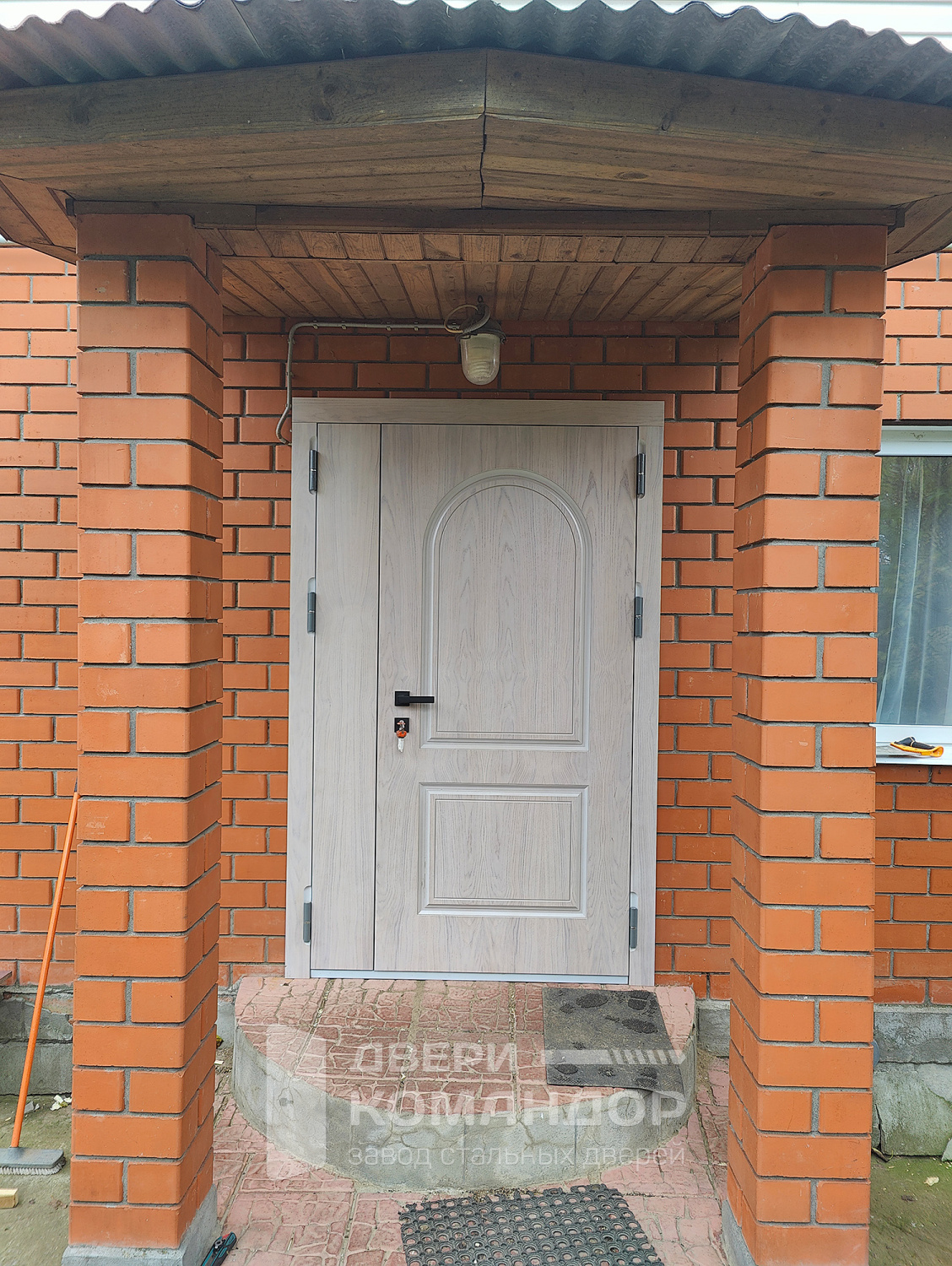 Для домов в Московском регионе (зимние минимумы −25..−30°C): без тамбура — от 80 мм, с терморазрывом. С тамбуром — от 60 мм достаточно. Для северных регионов (ниже −35°C) — от 100 мм с усиленным утеплением. Толщина 120 мм — это максимум, который имеет смысл: дальнейшее утолщение не даёт значимого прироста теплоизоляции, но сильно увеличивает вес и цену. Важно понимать, что теплоизоляция зависит не только от толщины полотна, но и от наличия терморазрыва, качества утеплителя и количества контуров уплотнения. Дверь 80 мм с терморазрывом теплее, чем дверь 100 мм без него.